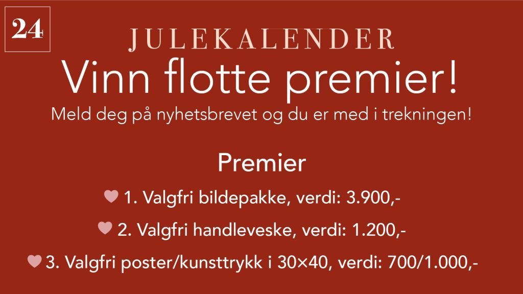 Jeg trekker 3 heldige vinnere i romjula, som vinner hver sin premie.