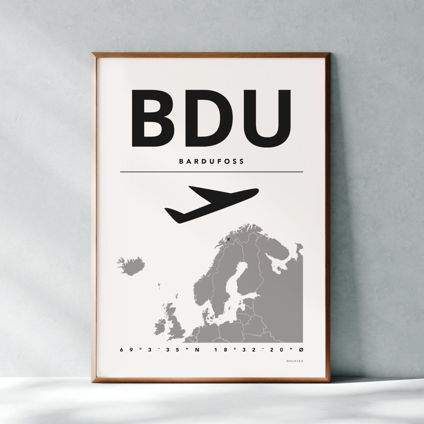 Norsk og stilren stedspostere med fokus på flyplasskode og fly. Perfekt til deg som elsker flyplasser eller ønsker seg noe fra hjemplassen på veggen.