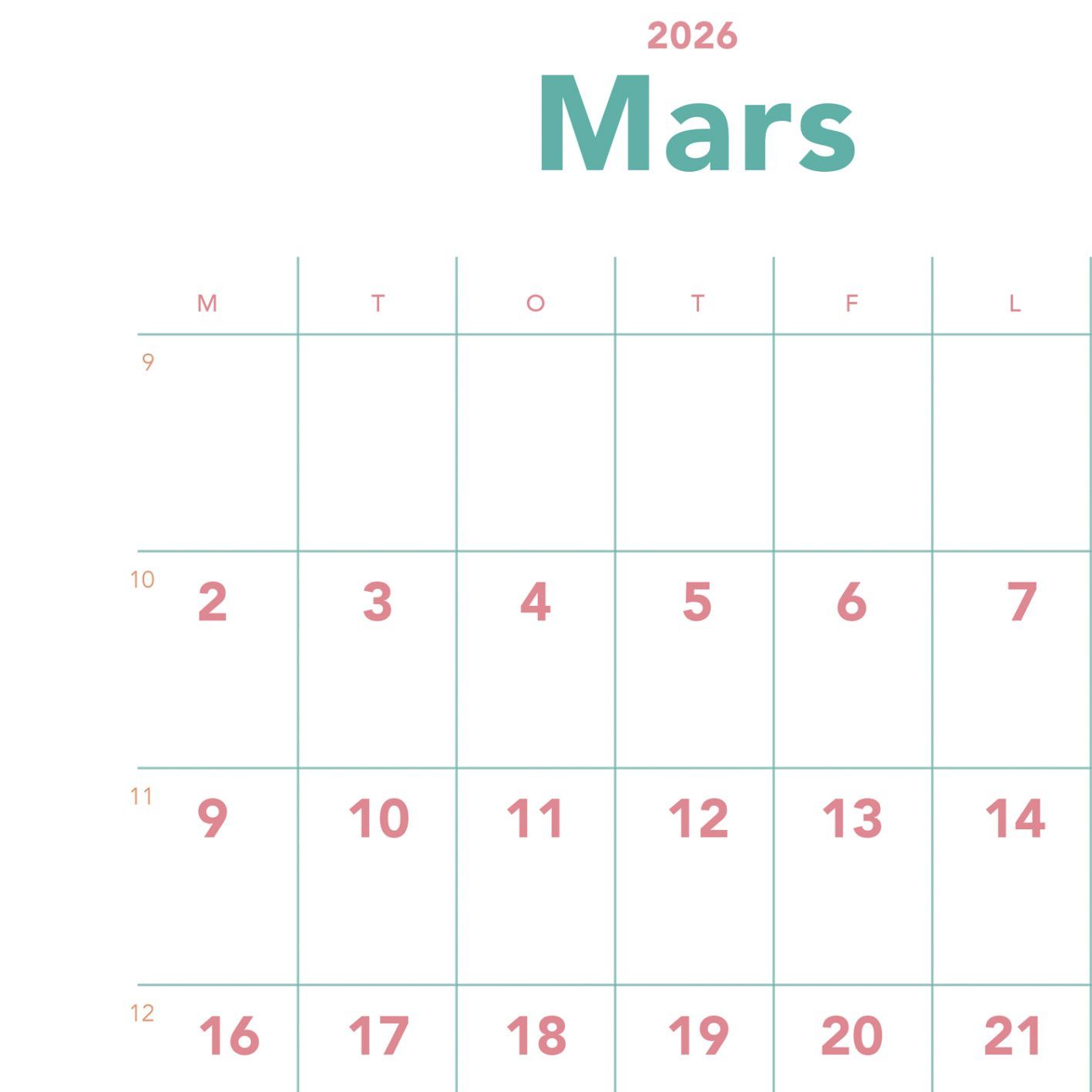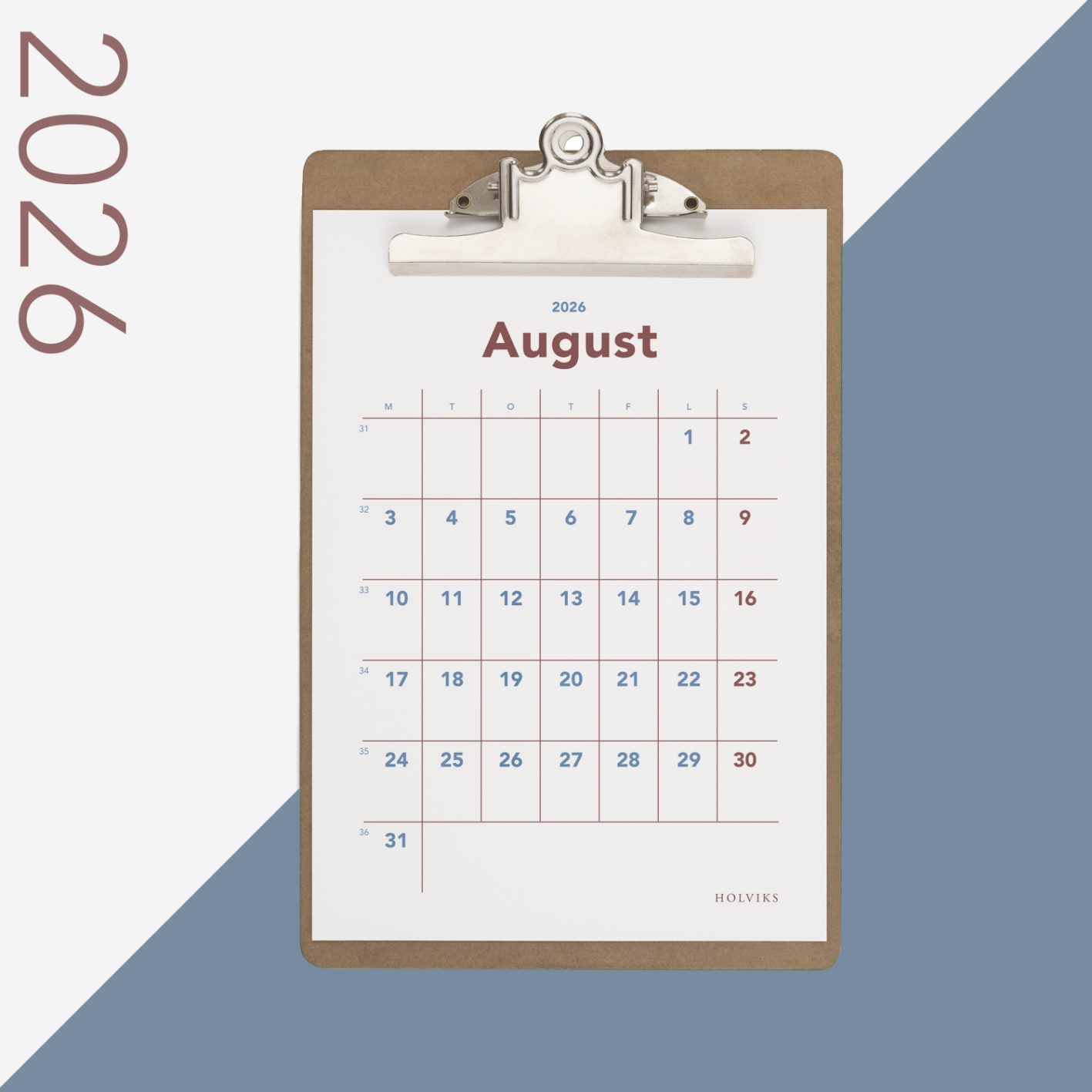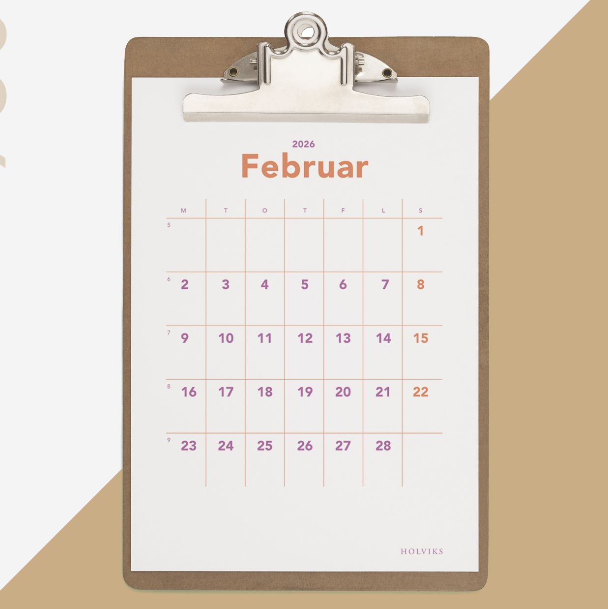 Kalenderen er satt opp for hånd – med nøye utvalgte farger, linjer, fonter og størrelser for et presist uttrykk.