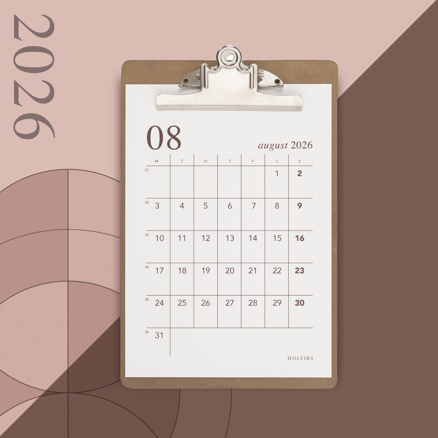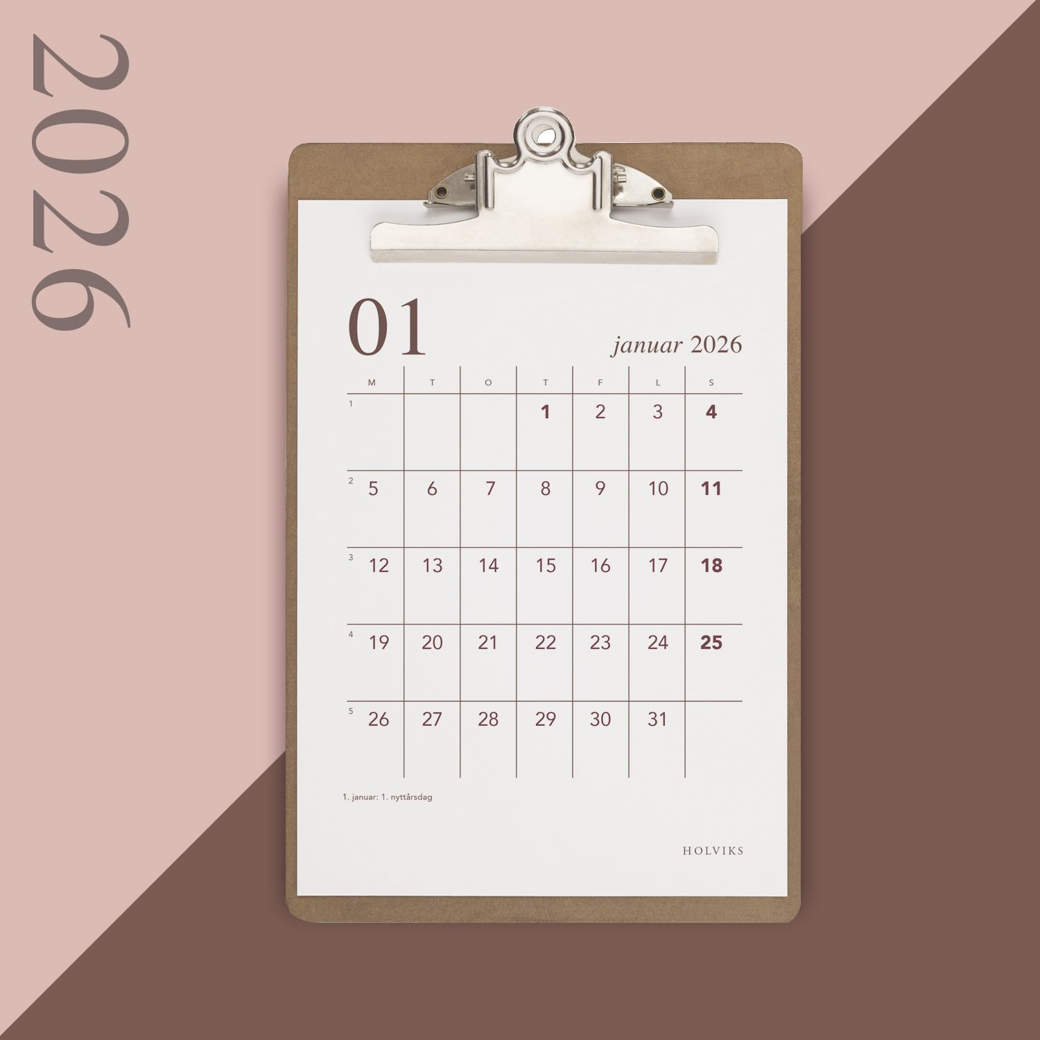 En oversiktlig og stilren kalender som passer perfekt både hjemme og på kontoret. Print den til kjøkkenet, kontoret – eller gi den i gave til den som har alt.