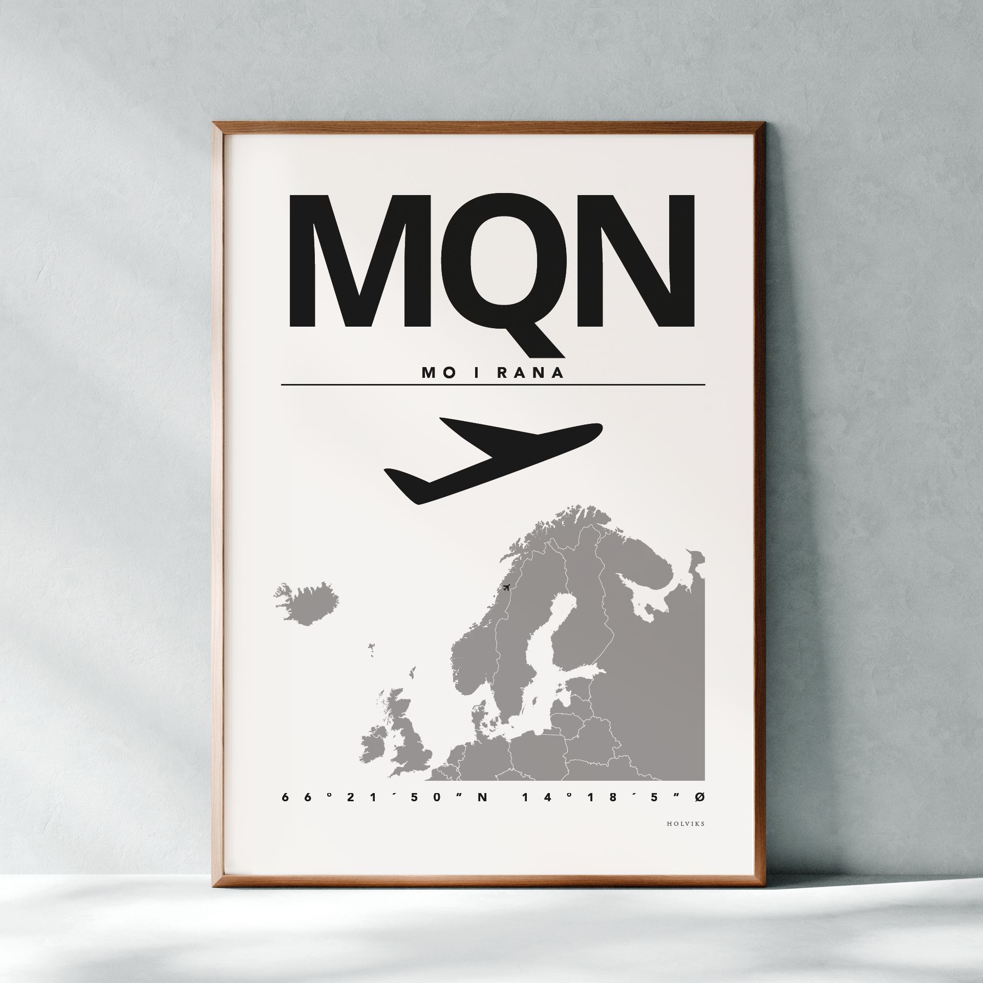 Norsk og stilren stedspostere med fokus på flyplasskode og fly. Perfekt til deg som elsker flyplasser eller ønsker seg noe fra hjemplassen på veggen.