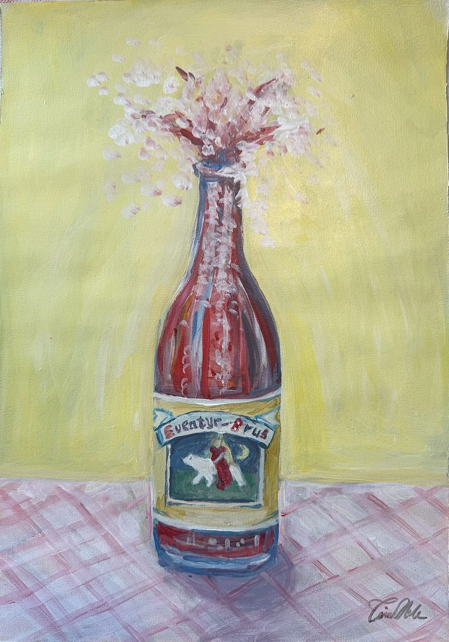 Akryl på akvarellpapir malt og signert av Tine Hole.