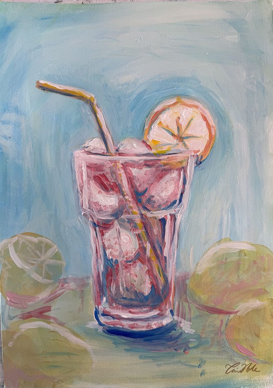Akryl på akvarellpapir malt og signert av Tine Hole.