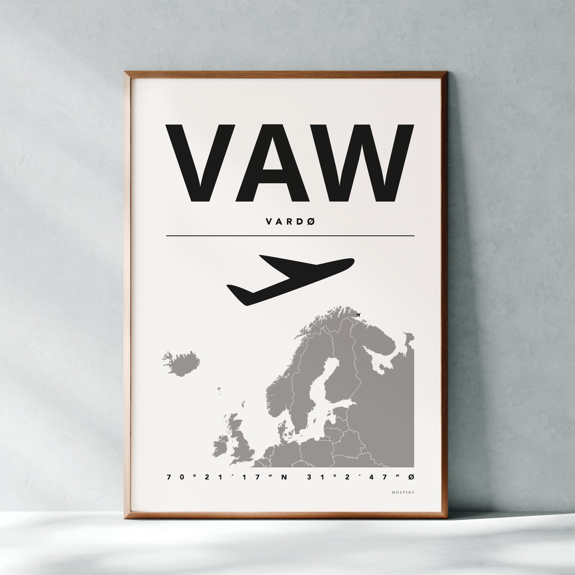 Norsk og stilren stedspostere med fokus på flyplasskode og fly. Perfekt til deg som elsker flyplasser eller ønsker seg noe fra hjemplassen på veggen.